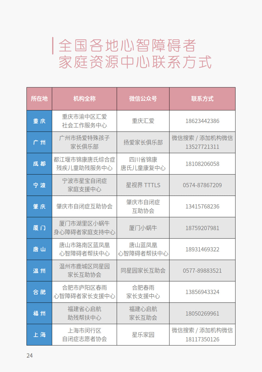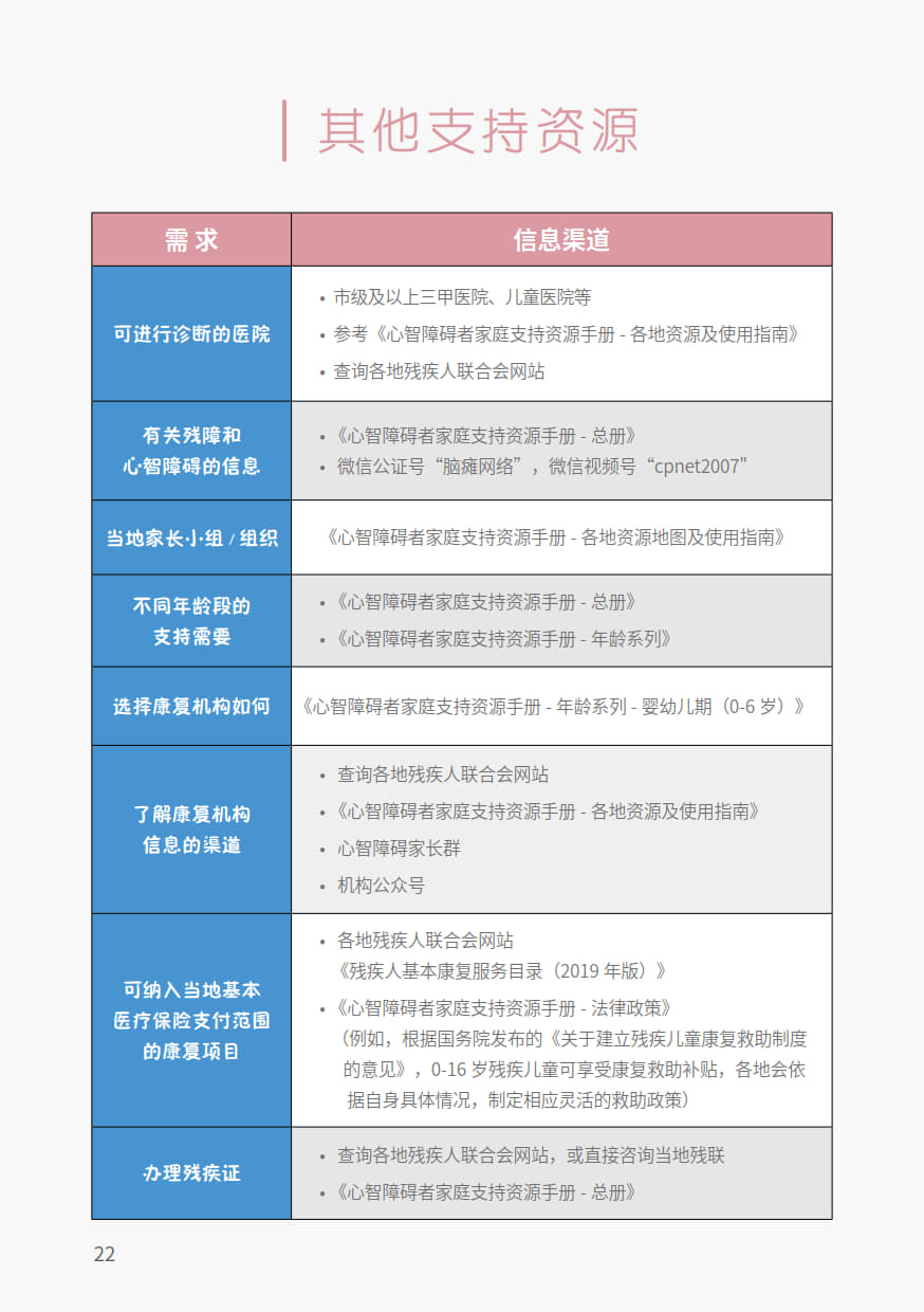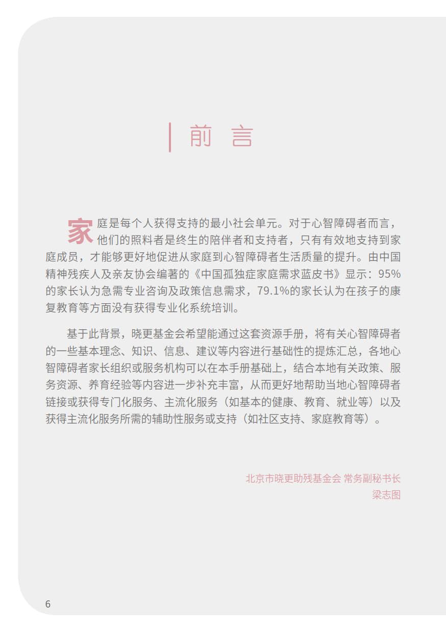 上一个:心智障碍者家庭支持资源手册——孤独症谱系障碍分册下一个:心智障碍者家庭支持资源手册——唐氏综合征分册
