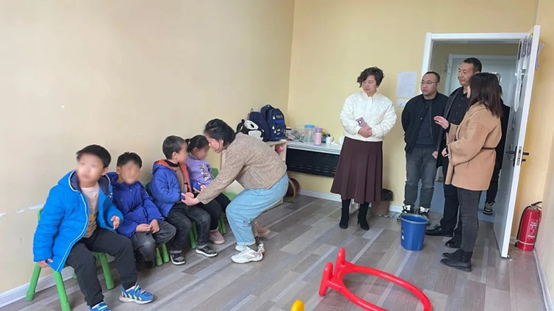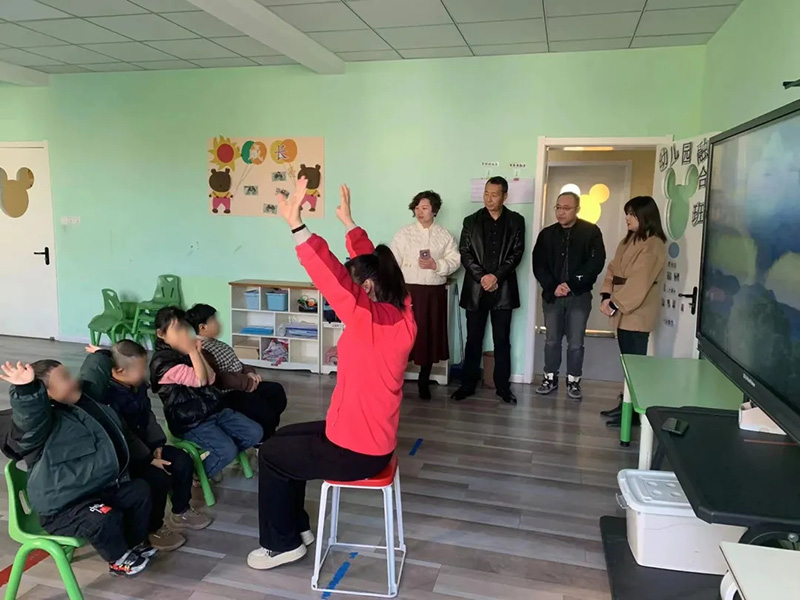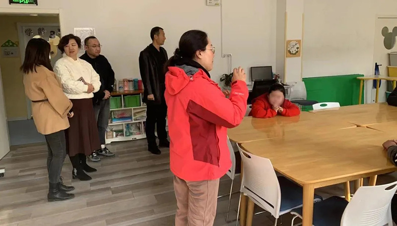 一来到涧西金雨点,洛阳市残联陈主任、涧西区残联王副理事长、孟都商贸总经理司润峰先后参观了中心的基础环境与配套设施,对金雨点的师资力量、康复课程与“康教融合”特色模式进行了详细了解。