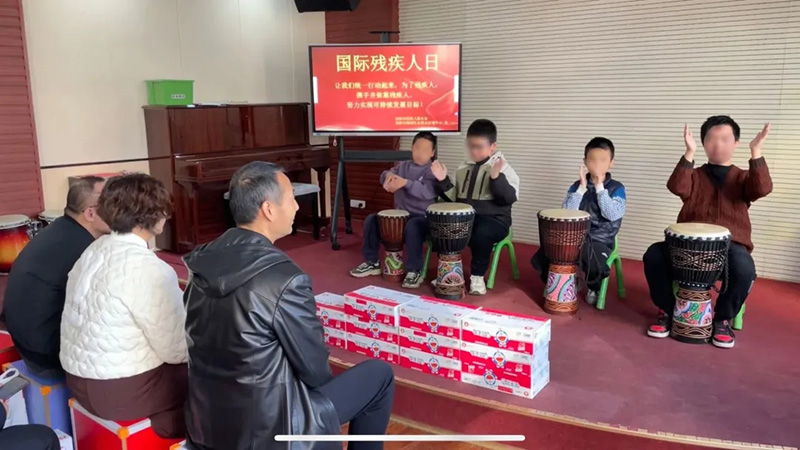 12月3日,洛阳市涧西区金雨点启智中心暖意融融、热闹非凡。为了庆祝第32个“国际残疾人日”的来临,洛阳孟都商贸有限公司慈善公益基金学生奶爱心捐赠仪式在涧西金雨点举行,洛阳市残疾人联合会康复中心主任陈向斌,洛阳市涧西区残联副理事长王广达,洛阳市孟都商贸有限公司总经理司润峰出席捐赠仪式,多名心智障碍者家长见证并参与了捐赠活动。