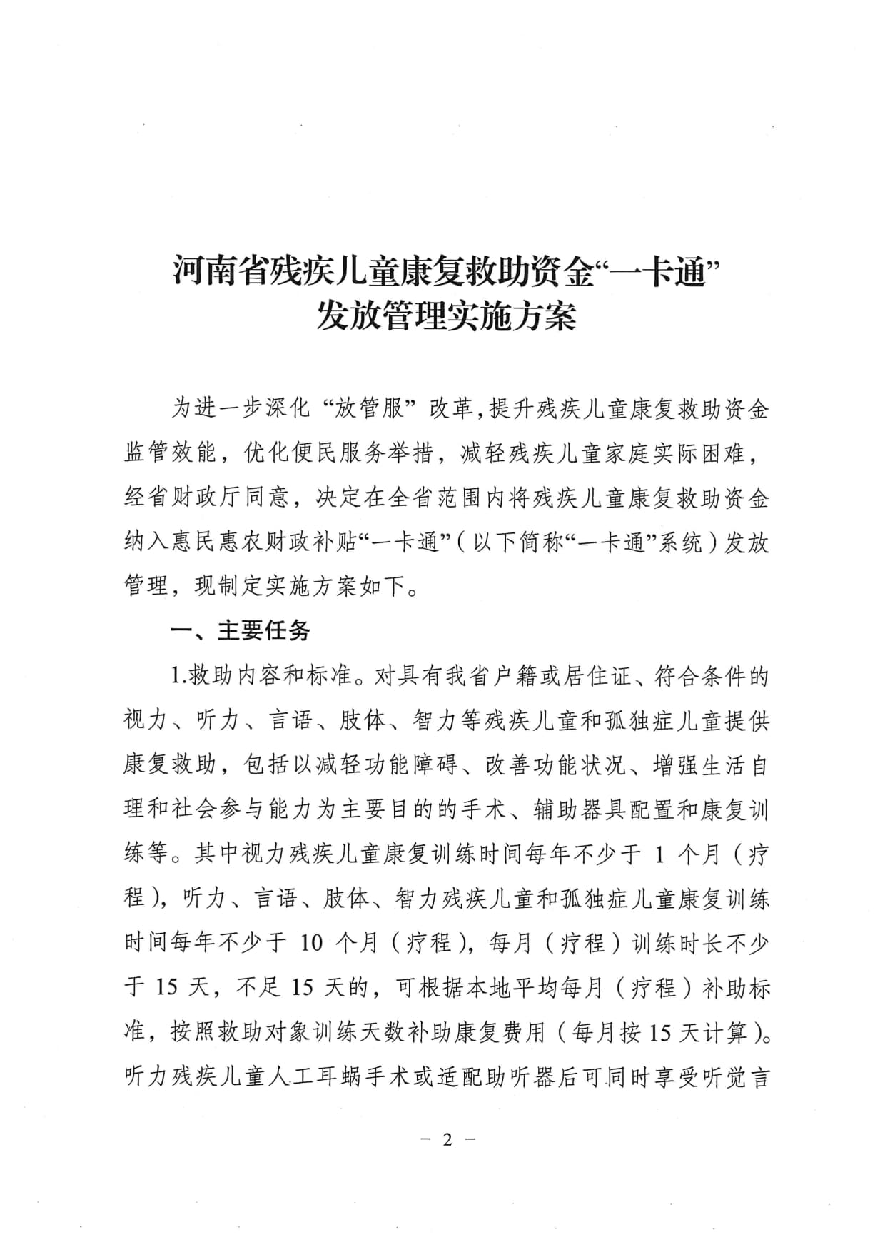 关于印发《河南省残疾儿童康复救助资金一卡通发放管理实施方案》的通知(豫残联【2026】4)
