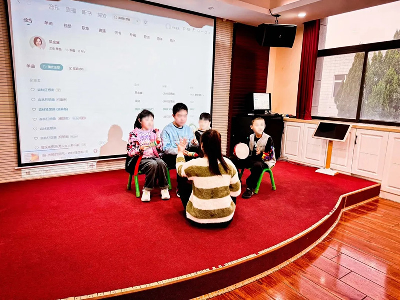 随后,调研组一行来到多媒体教室,现场观看了孩子们精心准备的节目——《森林狂想曲》奥尔夫乐器表演与《中国范》非洲鼓表演。